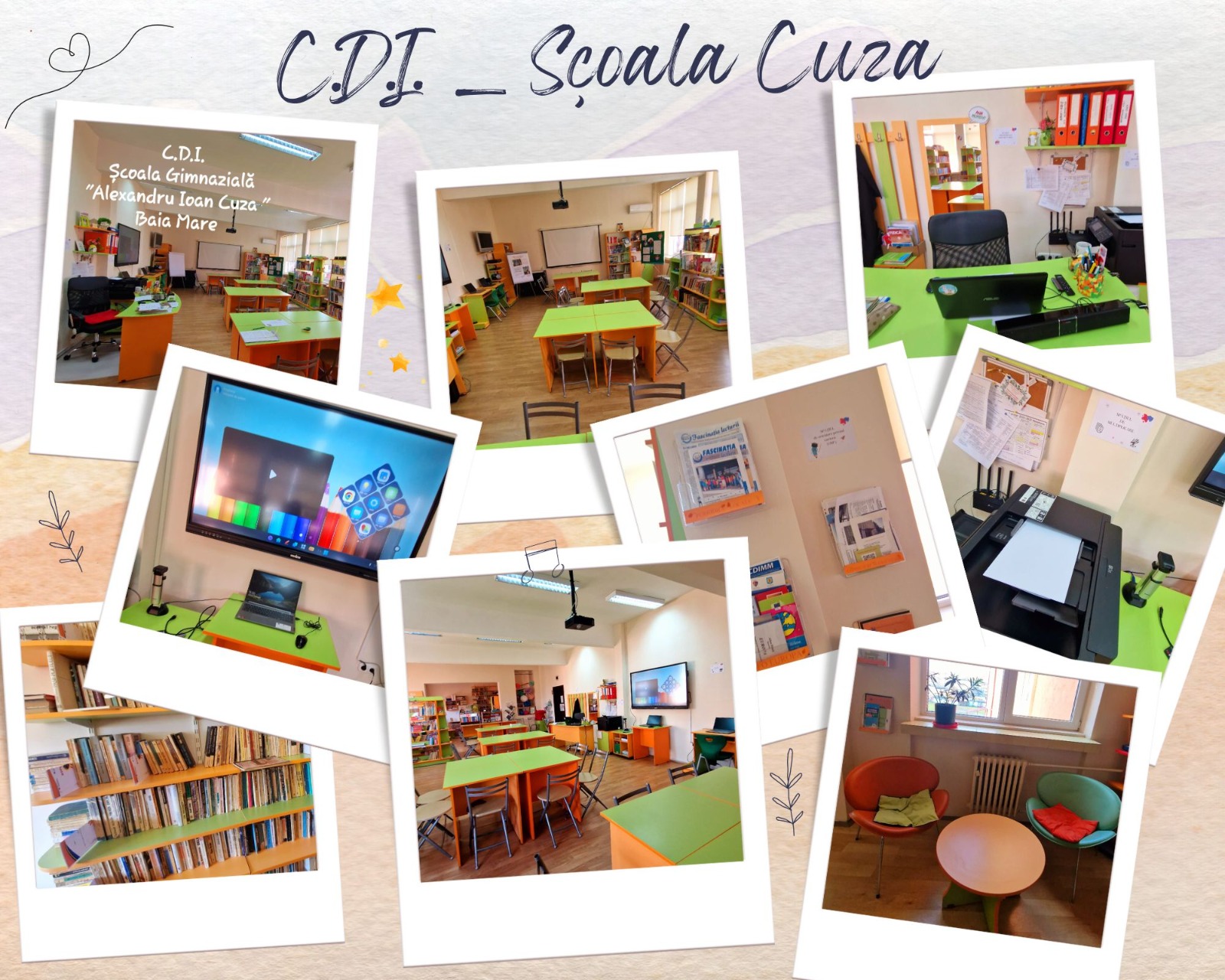 În CDI se desfăşoară animaţii de lectură, animaţii audio-video, animaţii de mass-media, expoziţii, ateliere de creaţie, activităţi prilejuite de diverse evenimente.
